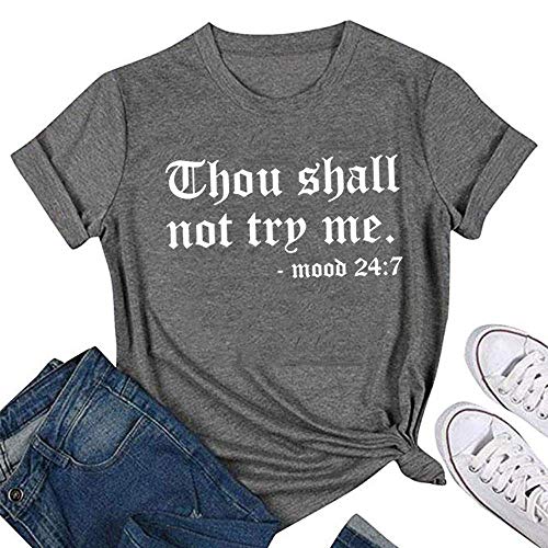 Thou Shall Not Try Me T Shirt for Women Funny Tops Teen Girls Graphic Tees (XL, Gray)