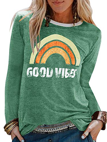 Umeko Womens Bring On The Sunshine Graphic Tees Letter Printed Casual Loose Summer T-Shirt (Large, 5-Green)