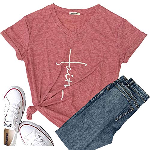 Womens Causal Faith Printed T-Shirt Christian Graphic Tops Tees Fashion Style Summer Girl Mother Mom Gift (S, Light Red)