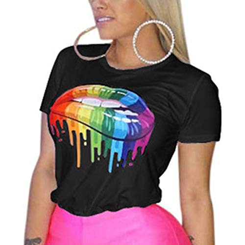 - ❤Funny Cute lips Print Tee Shirt for Women Junior Tee Girls, Suit For Casual, Workout, Office, Party, Home, Daily Wear, Sport