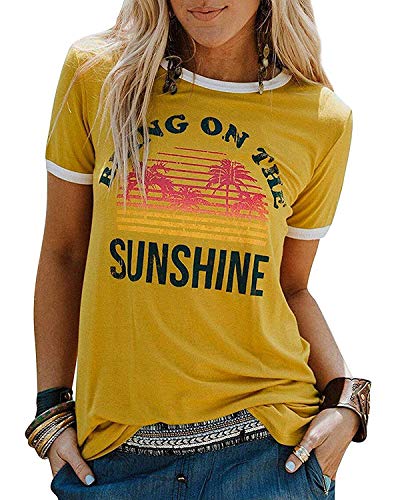YEXIPO Womens Bring On The Sunshine T-Shirt Graphic Tees Letter Printed Loose Casual Summer Funny Tops