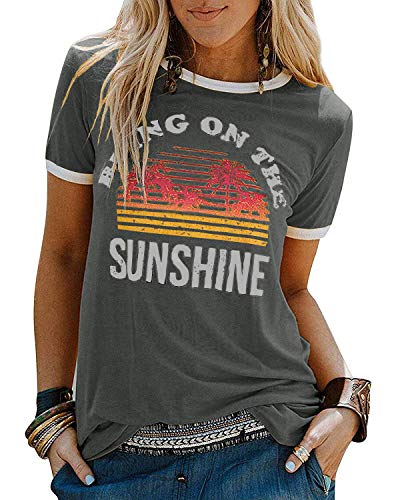 YEXIPO Womens Bring On The Sunshine T-Shirt Graphic Tees Letter Printed Loose Casual Summer Funny Tops Dark Grey