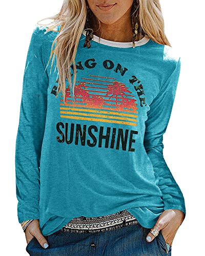 YEXIPO Womens Bring On The Sunshine T-Shirt Graphic Tees Letter Printed Loose Casual Summer Funny Tops (Medium, Z-Blue)