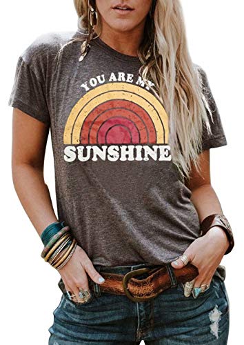 - Features: Funny You Are My Sunshine Letters Printed Tees Top, Vintage Street Rainbow Graphic Blouse Tee, Fashion Casual Round Collar Tees Shirt. Classic Short Sleeve Cotton Tunic Tops