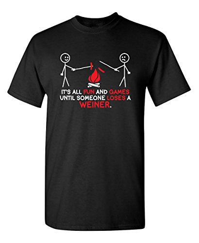 It’s All Fun And Games Until Someone Looses A Weiner Funny T-Shirt. The best part is when you pull this shirt over your head you become the center of attention. The finest quality cotton tee. They fit great, preshrunk and we only use brand name tees. The t-shirts are heavy weight cotton tees. We have over 1000 designs. Check out our store for more funny and novelty t shirts that will become your favorite.