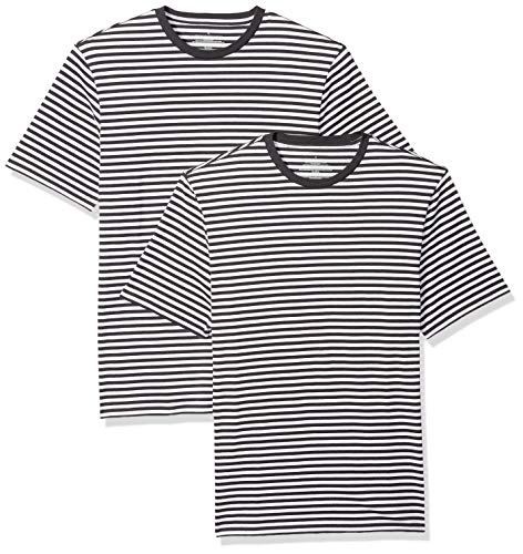 Amazon Essentials Men’s Loose-Fit Short-Sleeve Stripe Crewneck T-Shirts, Black/White, X-Large