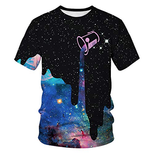 Auremore Unisex 3D Print T-Shirt Graphic Tee Crewneck Short Sleeve T-Shirts for Men Women Tunic Tops Galaxy Paint XL