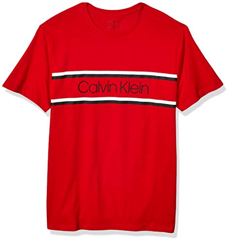 Calvin Klein Men’s Athleisure Logo Crewneck T-Shirt, Red double stripe, Large