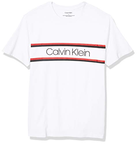 Calvin Klein Men’s Athleisure Logo Crewneck T-Shirt, White double stripe, Large