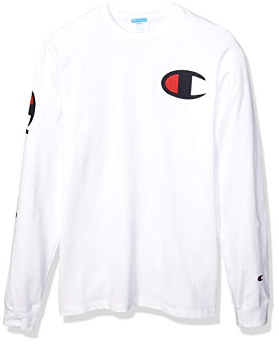 Champion LIFE Men’s Heritage Long Sleeve Tee, White W/Big C Graphic, Large