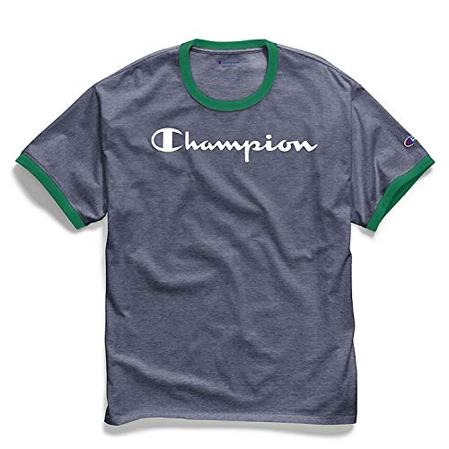 Champion Men’s Classic Jersey Graphic Ringer T-Shirt, Imperial Indigo Heather/Kelly Green, Large