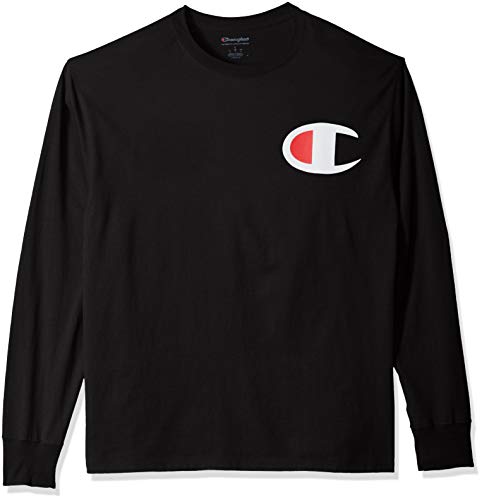 Champion Men’s Classic Jersey Long Sleeve Graphic T-Shirt, Black/Big c Logo, Small