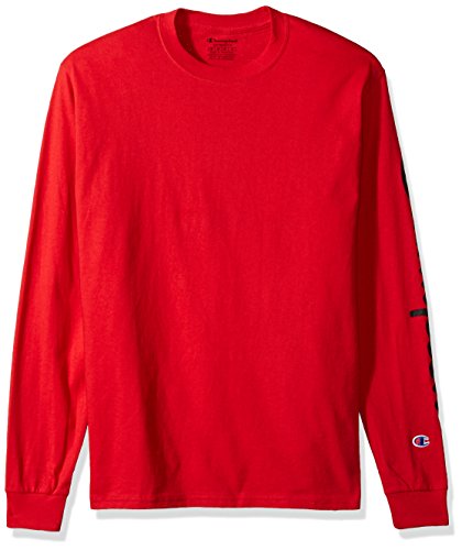 Champion Men’s Classic Jersey Long Sleeve Graphic T-Shirt, Red Lg