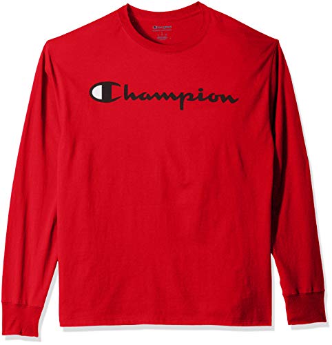 Champion Men’s Classic Jersey Long Sleeve Graphic T-Shirt, Scarlet/Chest Script, XX-Large