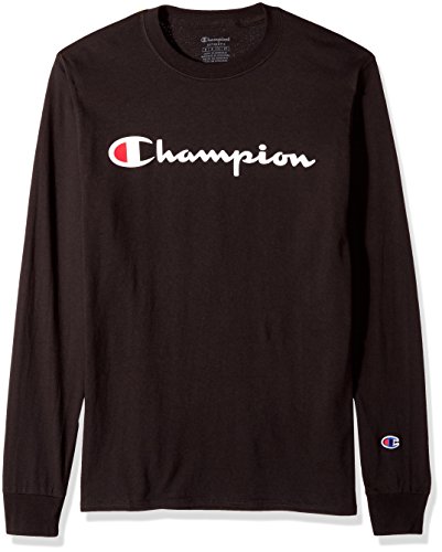 Champion Men’s Classic Jersey Long Sleeve Script T-Shirt, Black, Med