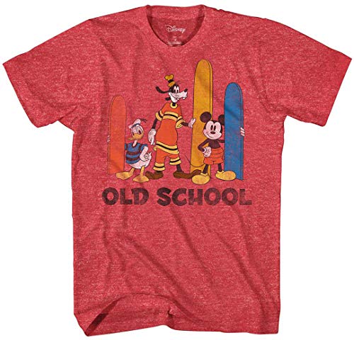 Disney Mickey Mouse Donald Duck Goofy Old School Men’s Adult Graphic Tee T-Shirt (Red Heather, X-Large)