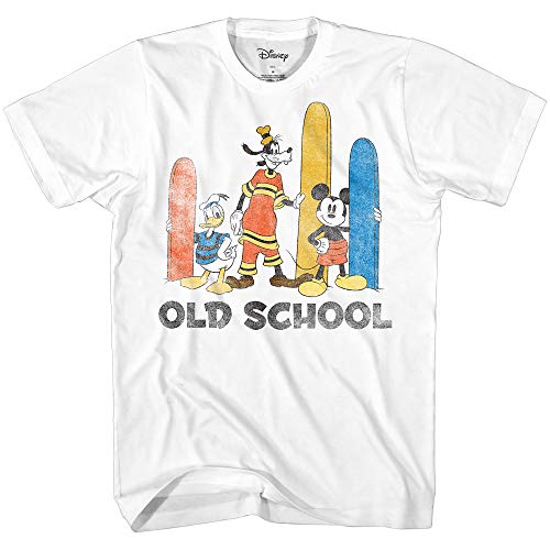 Disney Mickey Mouse Donald Duck Goofy Old School Men’s Adult Graphic Tee T-Shirt (White, X-Large)