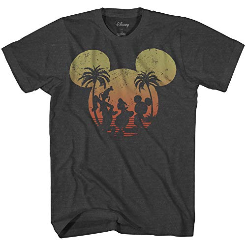 Disney Mickey Mouse Donald Duck Goofy Sunset Disneyland World Funny Mens Adult Graphic Tee T-Shirt (X-Large, Premium Charcoal Heather)