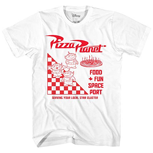 Disney Pixar Toy Story Pizza Planet Take Out Logo Disneyland World Tee Funny Humor Men’s Graphic T-Shirt (White, XX-Large)