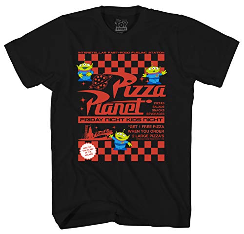 Disney Toy Story Pizza Planet Flyer Men’s Adult Graphic Tee T-Shirt (Black, Large)