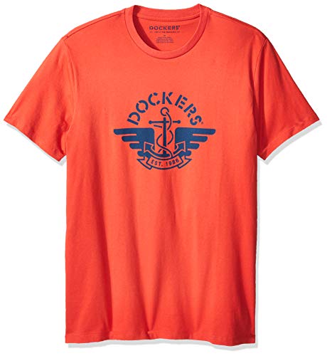 dockers Men’s Short Sleeve Crewneck Tee Shirt, Aurora Red – Logo, X-Large