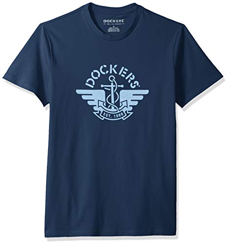 dockers Men’s Short Sleeve Crewneck Tee Shirt, Ocean Blue-1986 Logo, X-Large