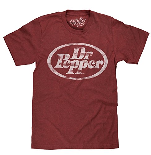 - YOUR FAVORITE NEW TEE WITH A COOL RETRO LOOK: Enjoy the nostalgia of the classic Dr Pepper logo, distressed and printed on a soft and unique brick black (dark red) heather tee.
