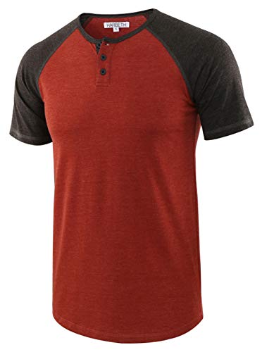 HARBETH Men’s Casual Short Sleeve Henley Shirt Raglan Fit Baseball T-Shirts Tee H.Rusty/H.Charcoal L