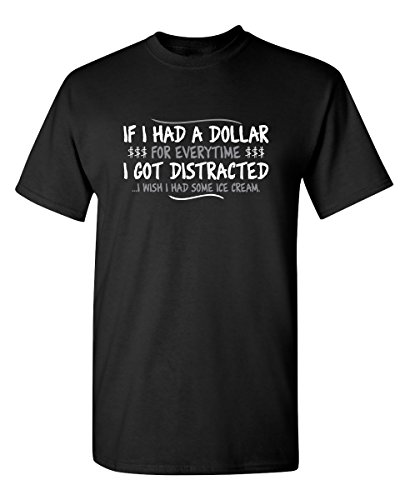 If i had a dollar for everytime i got distracted…i wish i had some ice cream Funny T-Shirt. The best part is when you pull this shirt over your head you become the center of attention. The finest quality cotton tee. They fit great, preshrunk and we only use brand name tees. The t-shirts are heavy weight cotton tees. We have over 1000 designs. Check out our store for more funny and novelty t shirts that will become your favorite.