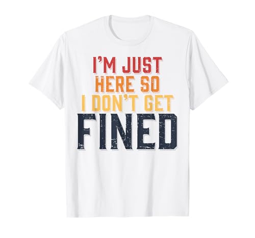 - Want to make a nice present for someone? Grab this perfect, graphic I’m Just Here So I Won’t Get Fined T-Shirt for youself. Wear it anywhere: meeting with friends, gym, morning runs, weekend events or in home.