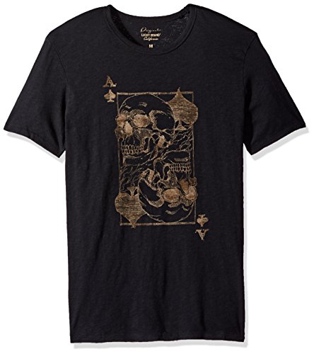 Lucky Brand men’s short sleeve fashion knit tee shirt with contrast card and skull graphic print