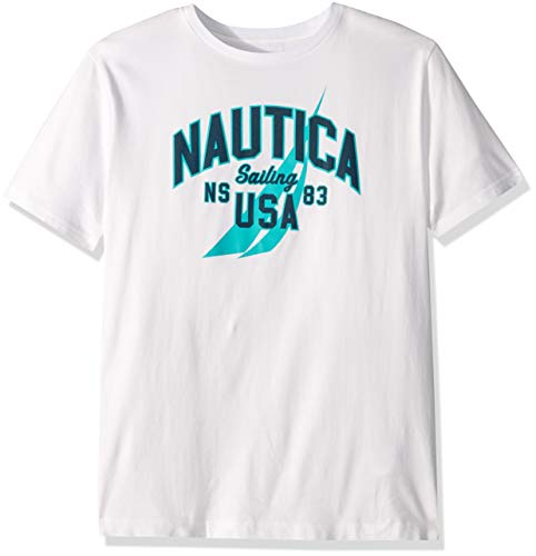 Nautica Men’s Short Sleeve 100% Cotton Classic Logo Series Graphic Tee, Bright White, Medium