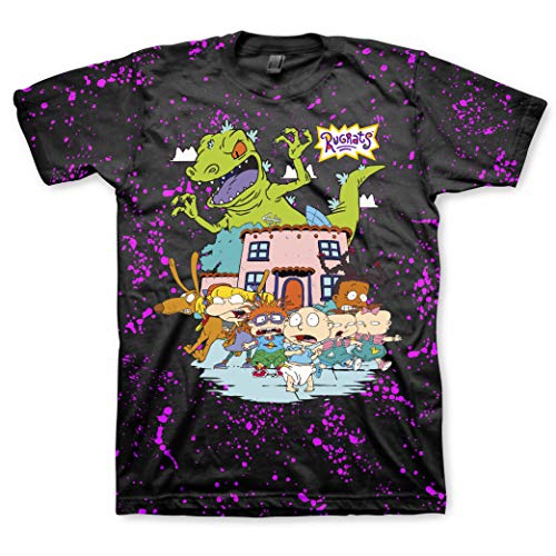 Nickelodeon Mens 90’s Classic Shirt – Rugrats, Invader Zim, Ren & Stimpy, and Hey Arnold Vintage T-Shirt (Black Splatter, X-Large)