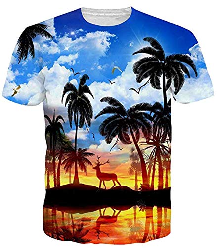 Sykooria Teen Girls Hawaiian Tree Full Digital Print Deer Summer Couple’s Tee Shirt