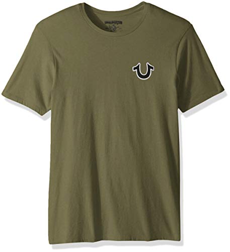 True Religion men’s classic logo Buddha tee features short sleeves, comfortable crew neckline, square hem, and slim fit. The iconic horseshoe logo is adorned on the left chest while the Buddha print is on the back.