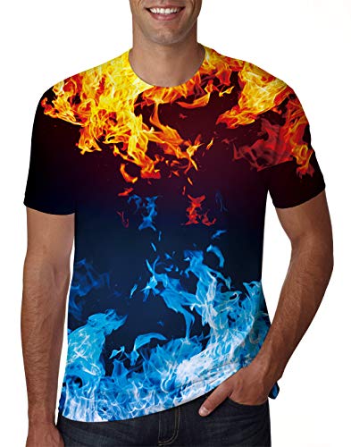 uideazone Couples 3D Flame T-Shirt for Men Women Short Sleeve Graphic Tees Casual Crew Neck Shirt Top