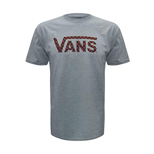Vans Mens Classic Logo Graphic T-Shirt (Medium, Grey/Maroon Checkerboard)