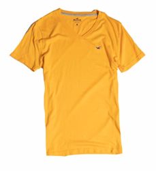Hollister Men’s Tee Graphic T-Shirt V Neck – Crew Neck (Yellow V Neck 0619, M)