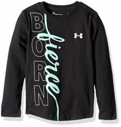 Under Armour Girls’ Little Long Sleeve Graphic Tee, Carbon Heather Born Fierce, 4