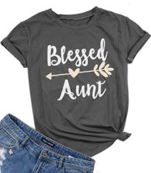 Women Casual Blessed Aunt Letter Printed Arrow T-shirt Round Neck Short Leeve Baseball Tee Top Size Chart: (1inch=2.54cm) S (US XS)—Bust 36.22″—–Lenght 25.98″—-Waist 33.85M (US S)—Bust 37.79″—–Lenght 26.37″—-Waist 35.43L