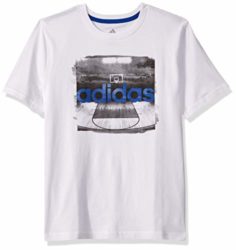 This short sleeve cotton jersey graphic t-shirt from Adidas brings comfort, Quality and value to your active wardrobe. Product Features Screen print features photoreal field and court incorporating core