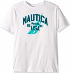Nautica Men’s Short Sleeve 100% Cotton Classic Logo Series Graphic Tee, Bright White, Small