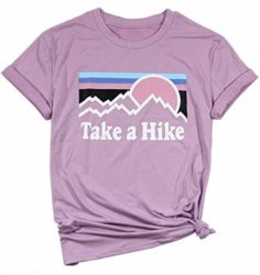 Take A Hike Print Cute Graphic T Shirts for Women AEURPLT Size Chart S: Length 25.98″ Bust–37.80″ Shoulder–17.32″ M: Length 26.77″ Bust–39.37″ Shoulder–18.11″ L: Length 28.35″ Bust–40.94″ Shoulder–18.90″ XL: Length