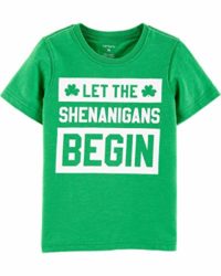 He’s St. Patrick’s Day ready in this cute tee, complete with short sleeves and a silly slogan. Product Features 100% cotton slub jersey Imported Machine washable Ribbed neckline