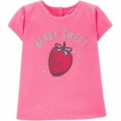 She’ll look “berry sweet” in this girls’ Carter’s sequined strawberry graphic tee in pink. Product Features “Berry Sweet” Glittery Slogan Sequined Strawberry Applique Short Sleeve 60% Cotton, 40% Polyester
