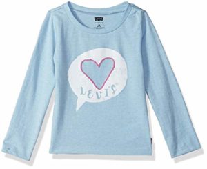 Levi’s Baby Girls Long Sleeve Graphic T-Shirt, Chambray Blue Heather, 24M