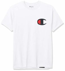 The classic short-sleeve Cotton Tee with our iconic Champion graphics front and center. Product Features All cotton comfort and breathability (Greys are a cotton-rich blend) Athletic fit through the