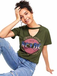 SheIn Women’s V Neck Choker Short Sleeve Junior Tops Teen Girls Graphic Tees Large Army Green