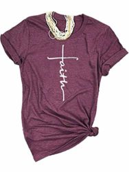 Govc Womens T Shirts Casual Summer Graphic Tee Faith Printed Short Sleeve Christian Tee Shirt Tops(Purple,S)