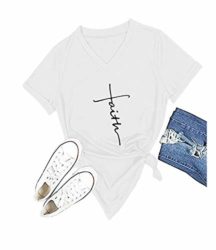 Product Features This women’s t shirts with soft,stretchy,comfortable materail to wear Round neck, short sleeve, faith graphic printed with this inspirational tshirts for women Great fashion tops for women,